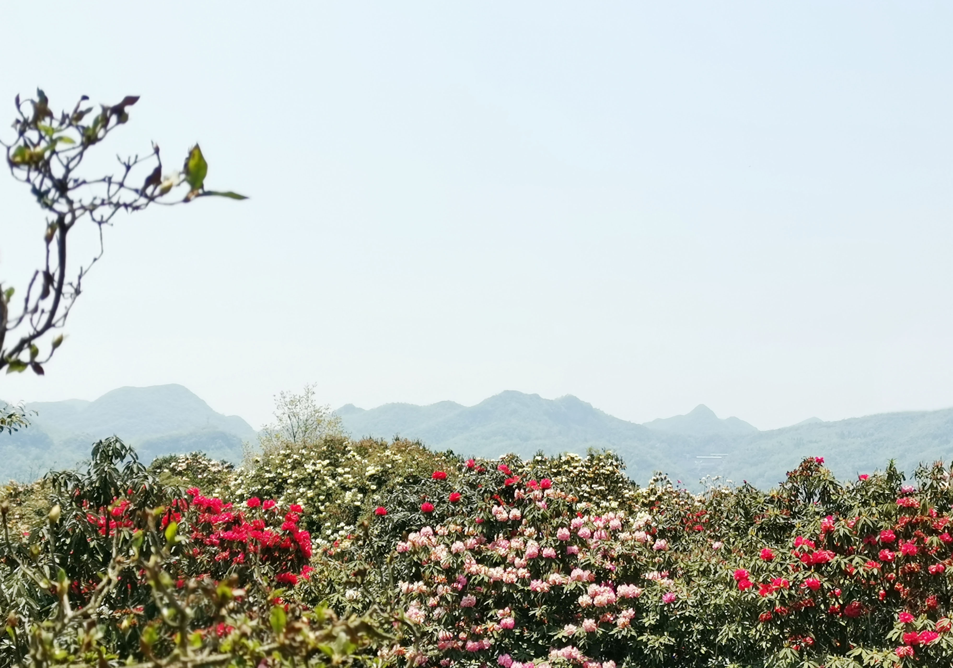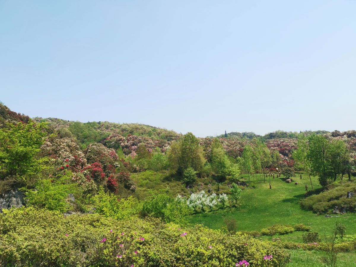 四月春風(fēng)吹來綠草茵茵山花爛漫,萬紫千紅斗芳菲的美麗畫卷。五彩繽紛的百里杜鵑讓都市人遠(yuǎn)離喧鬧城市回歸大自然懷抱。