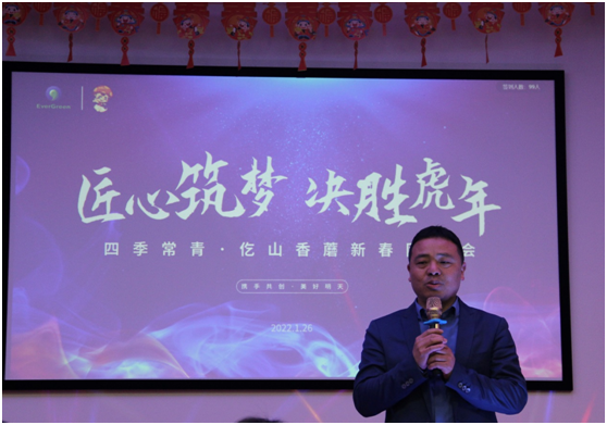 銀年辭舊歲,金虎鬧新春。時光飛逝,歲月更迭,充滿夢想和期待的2022年已向我們走來?!敖承闹?,決勝虎年”四季常青2022年新春團(tuán)拜會于2022年1月26日在四季常青道真工廠隆重舉行。