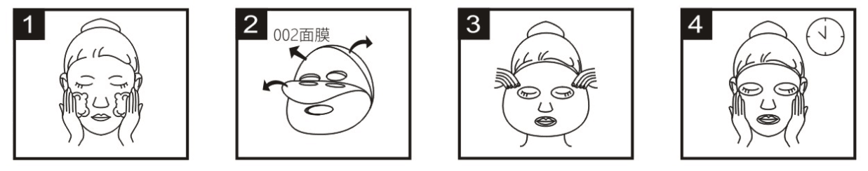 【使用說明】面部清潔后,打開內(nèi)袋,取出面膜。此面膜為三層包裝,取出中間